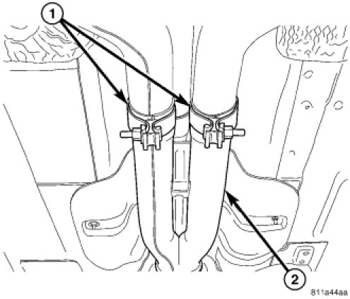25. Remove jack (2) from under rear crossmember.