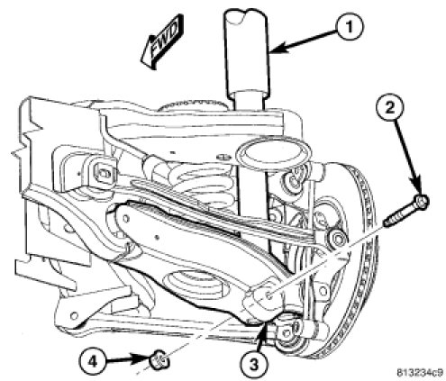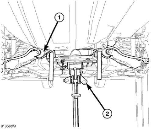 31. If equipped with SRT8 disc brakes, at each rear disc brake, support spring link using a transmission jack or other appropriate jack as indicated in removal procedure.
