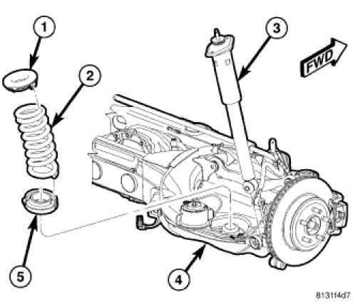 NOTE: Before installing coil spring, make sure isolators (1 and 5) are completely installed on ends of spring.