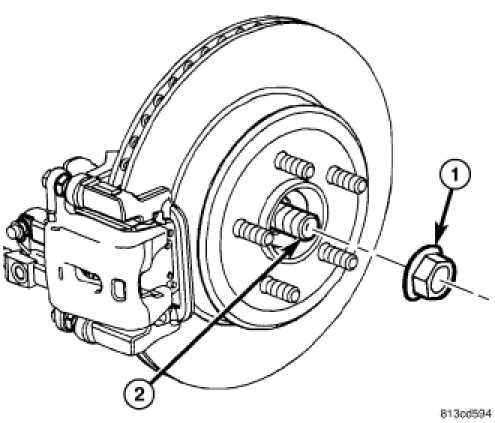 38. On each side of vehicle, slide an axle half shaft (2) through hub and bearing and install hub nut (1). Do not tighten hub nuts at this time.