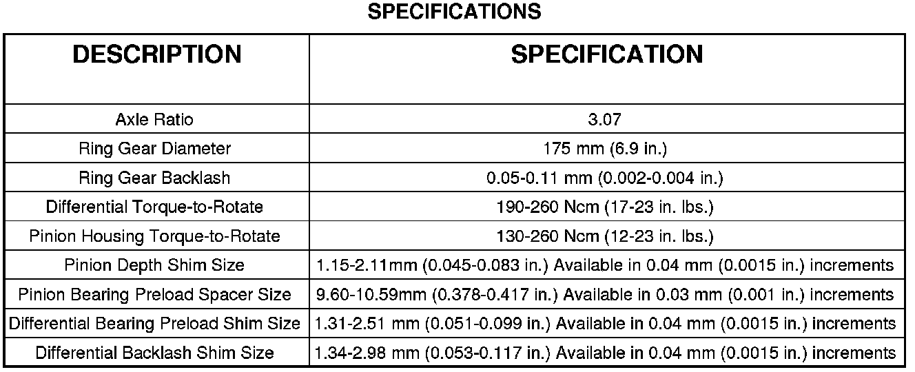 SPECIFICATIONS - 175MM FIA FRONT AXLE