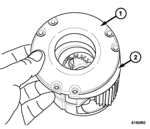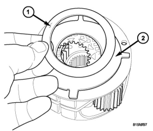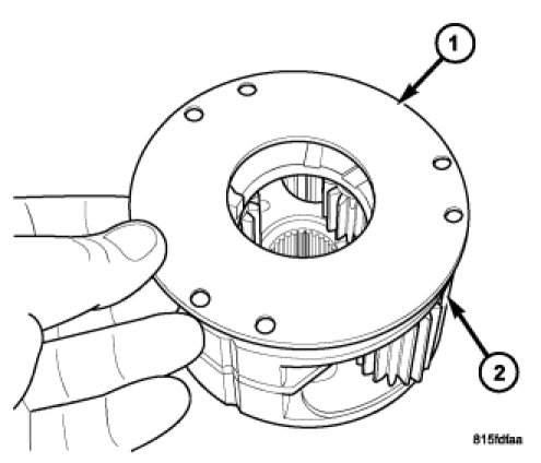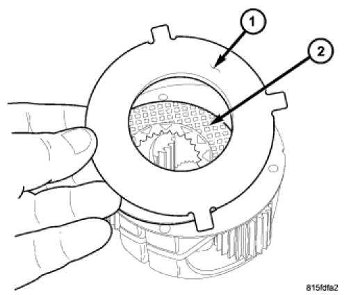 1. Install the friction disc washer (1) onto the planetary assembly (2).