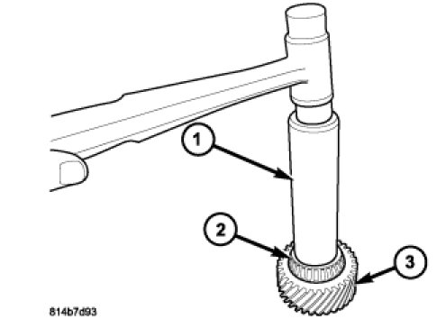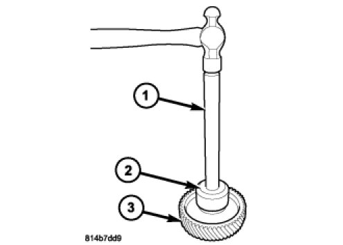 7. Install the front output shaft front bearing (2) onto the front output gear (3) with Installer C-3717 (1).