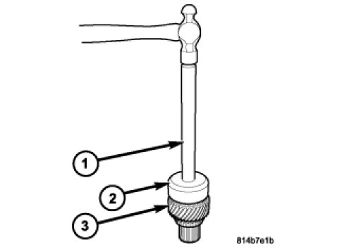 1. Install the intermediate gear rear bearing race into the rear housing (1) with Handle C-4171 (2) and Installer D-130 (3).