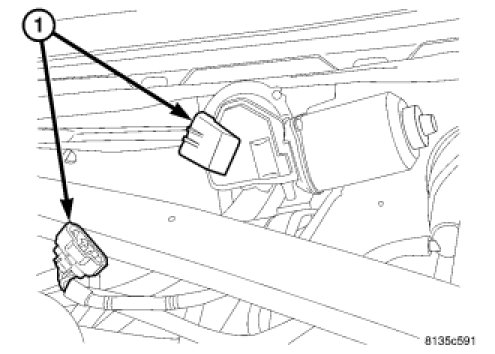 4. Connect the wiper motor electrical connector (1).