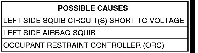 - Repair the Left Side Squib Line 2 circuit for a short to voltage.
