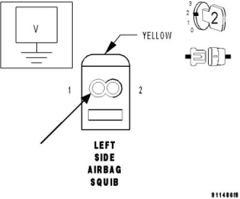 Measure the voltage of the Left Side Squib Line 2 circuit at the Left Side Squib Airbag connector.