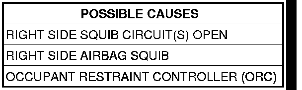 - Repair the Right Side Squib Line 2 circuit for an open.