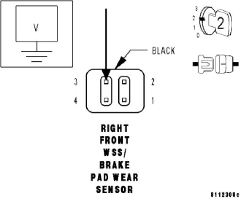 Measure the voltage of the Right Front Wheel Speed Sensor 12 Volt Supply circuit at the Right Front Wheel Speed Sensor harness connector.