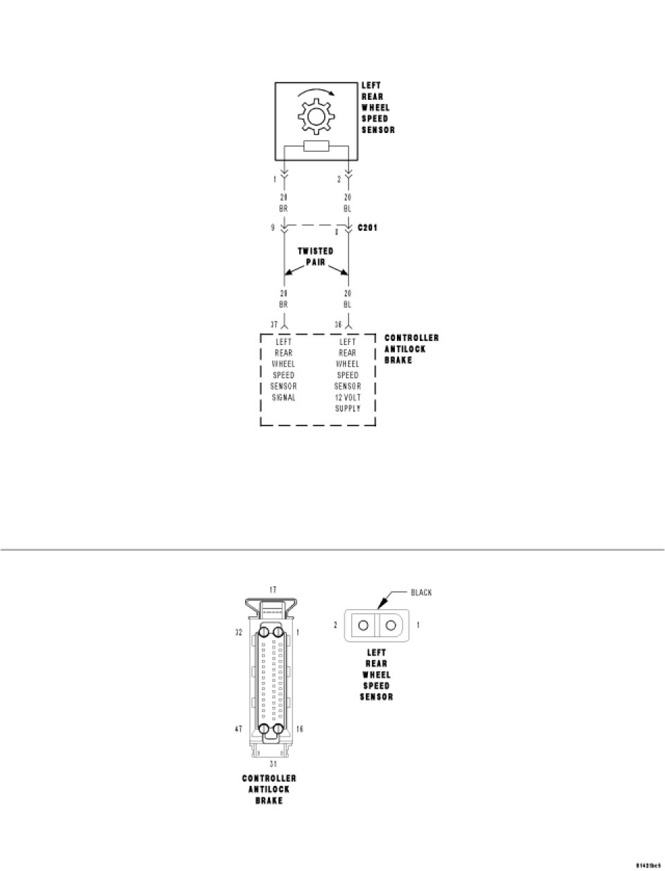 Visually inspect the Left Rear Wheel Speed Sensor, connector and tone wheel for damage and correct installation.