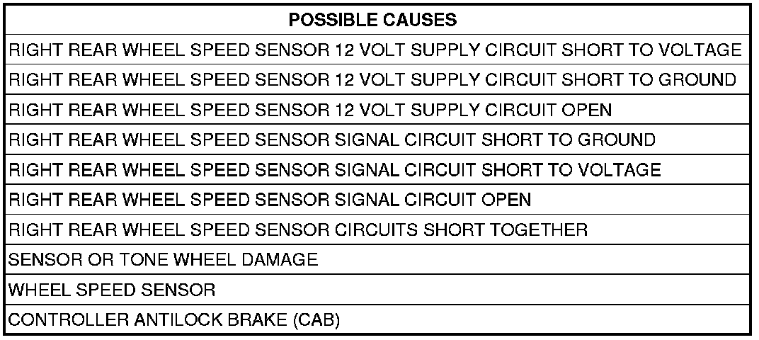 - Repair the Right Rear Wheel Speed Sensor 12 Volt Supply circuit for a short to ground.