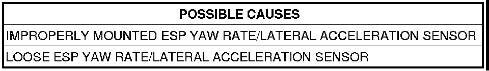 - Set Condition: The Controller Antilock Brake (CAB) will set this DTC if the calculated ESP Yaw Rate/Lateral Acceleration Sensor is out of the specified range.
