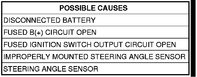 NOTE: This DTC will possibly set if the battery has been disconnected. Before performing any diagnostics confirm that the steering angle sensor is calibrated correctly. If the DTC is current, and the battery has been previously disconnected, perform the following procedure to recalibrate the steering angle sensor.