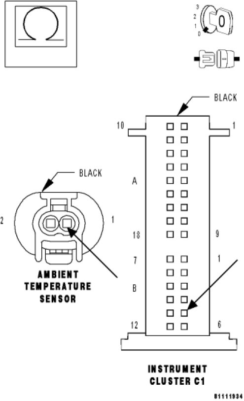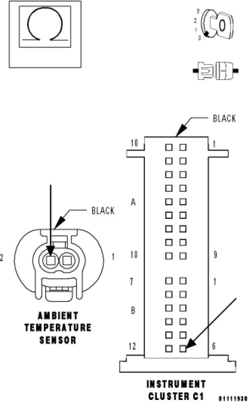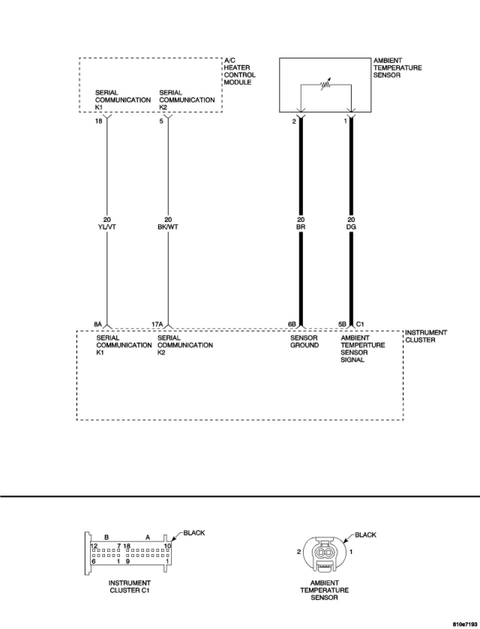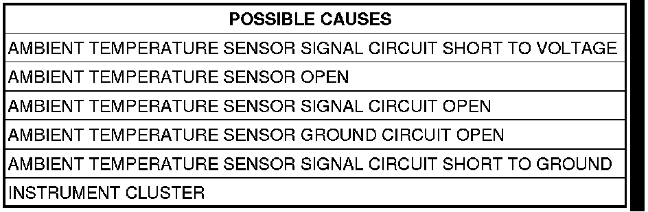 - Set Condition: The A/C Heater Control Module reports an abnormally high or low voltage that is detected by the Instrument Cluster on the Ambient Temperature Sensor Signal circuit.