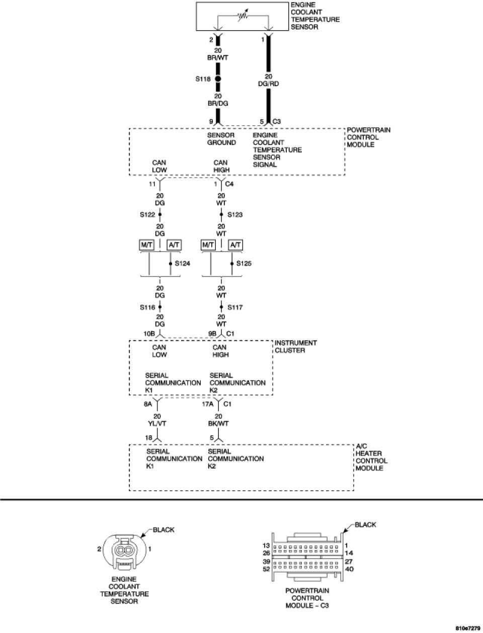- Set Condition: The A/C Heater Control Module reports an abnormally high or low voltage that is detected by the Instrument Cluster. The abnormal condition is at the Powertrain Control Module (PCM) on the Engine Coolant Temperature Sensor Signal circuit. The abnormal condition is communicated from the PCM to the Instrument Cluster by the CAN bus.