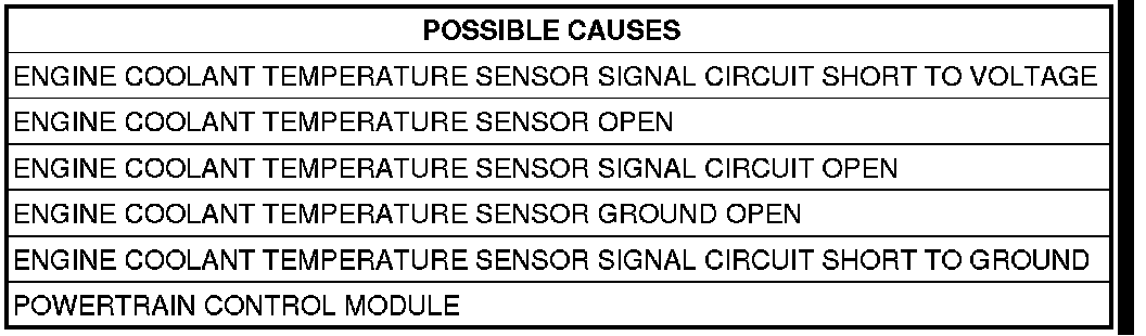 - Repair the Engine Coolant Temperature Sensor Signal circuit for a short to ground.
