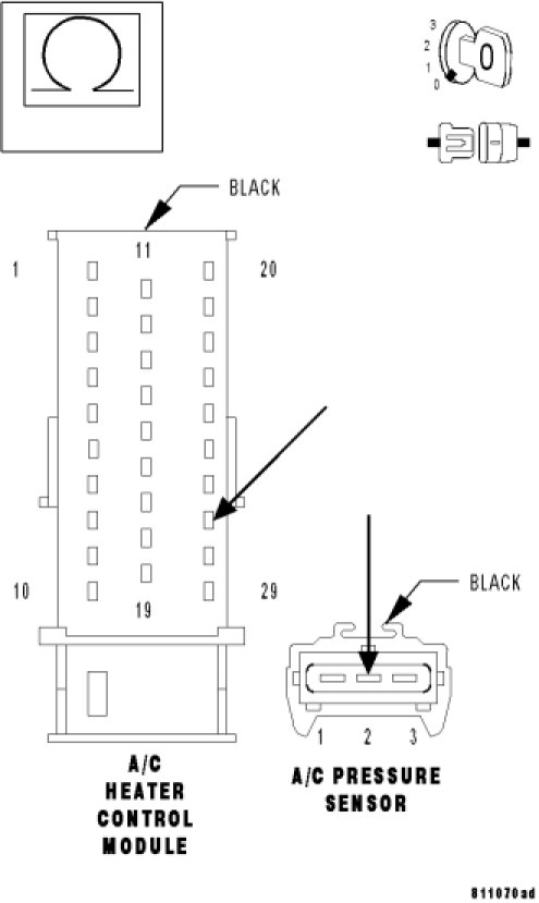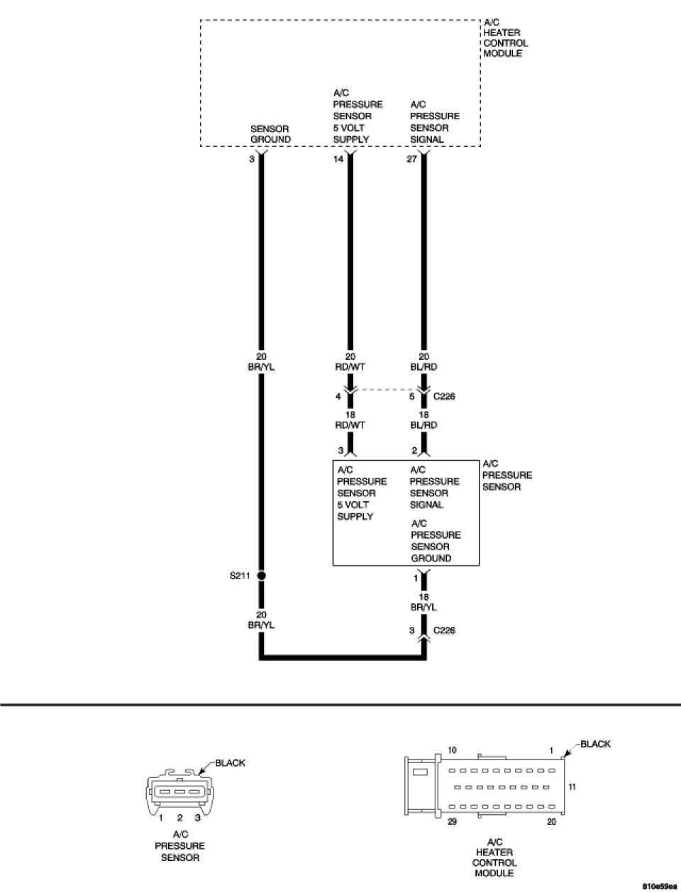 - Set Condition: The A/C Heater Control Module detects an abnormally high or low voltage on the A/C Pressure Sensor Signal circuit.