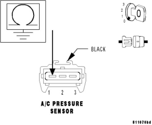 Connect a jumper wire between the A/C Pressure Sensor Signal circuit and the Sensor ground circuit.