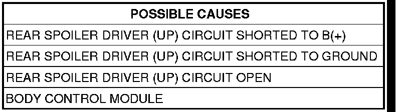 3. REAR SPOILER DRIVER (UP) CIRCUIT SHORT TO GROUND