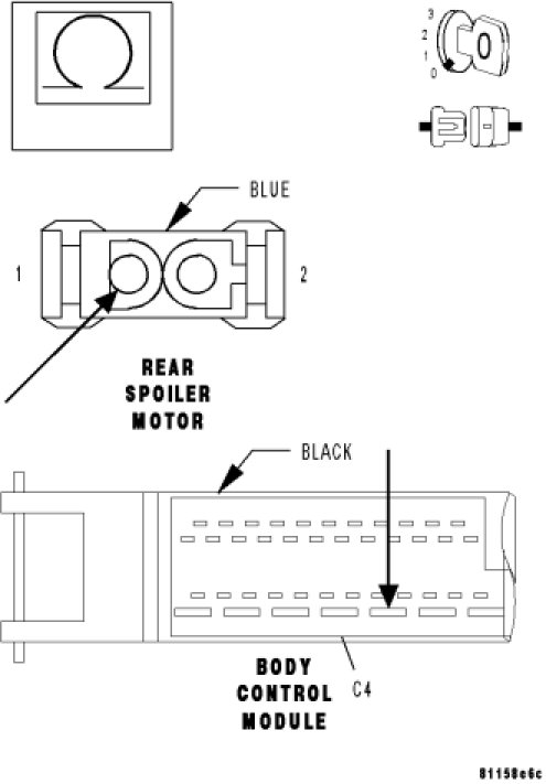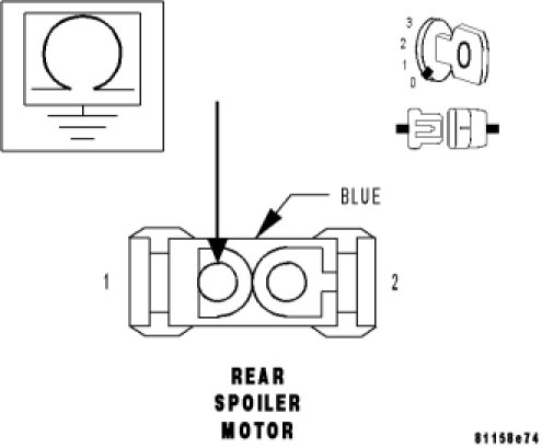 Measure the resistance between ground and the Rear Spoiler Driver (Up) circuit at the Rear Spoiler Motor harness connector.