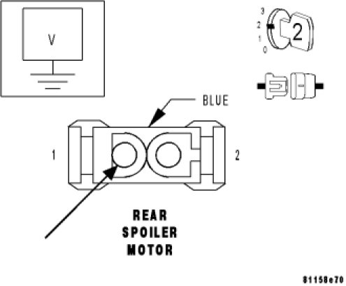 Measure the voltage of the Rear Spoiler Driver (Up) circuit at the Rear Spoiler Motor harness connector.