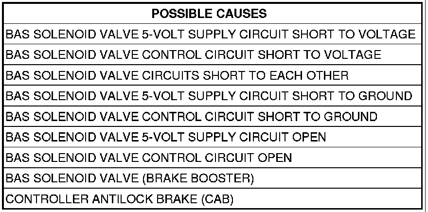 - Set Condition: The Controller Antilock Brake (CAB) detects a BAS Solenoid Valve malfunction.
