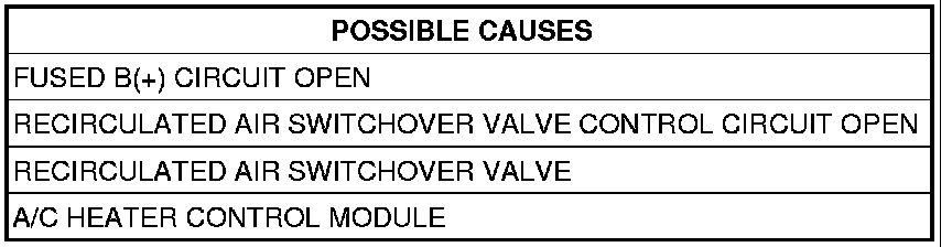 - Repair the Recirculated Air Switchover Valve Fused B(+) circuit.