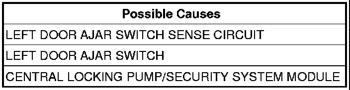 - Repair the Left Door Ajar Switch Sense circuit for a short to ground.