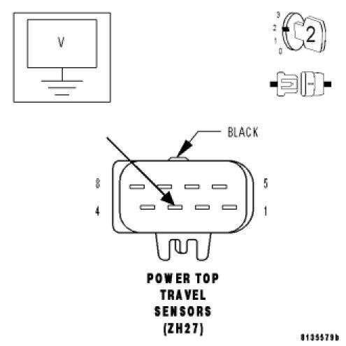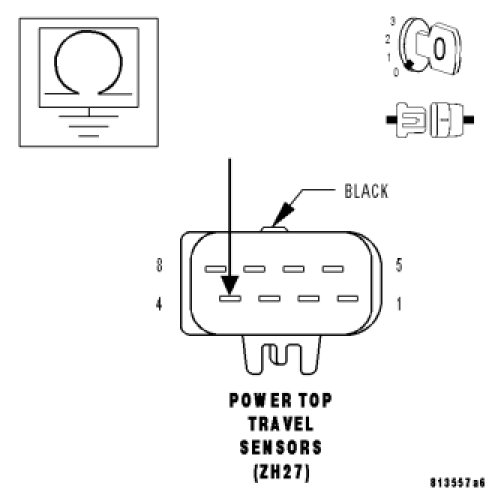 - Set Condition: When the Power Top Control Module senses an open or a short to ground on the Travel Sensor (Rod Side) +/- circuit.