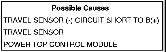 - Set Condition: When the Power Top Control Module senses a short to B(+) on the Main Cylinder Travel Sensor (-) circuit.