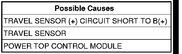- Set Condition: When the Power Top Control Module senses a short to B(+) on the Main Cylinder Travel Sensor (Base Side) (+) circuit.