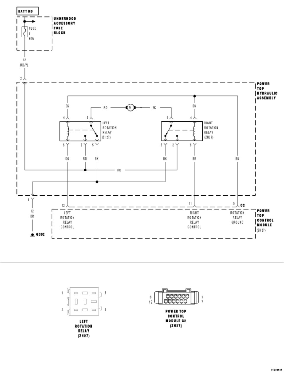 - When Monitored: With the ignition on, the Power Top Control Module continuously senses the voltage on the Left Rotation Relay Control circuit.