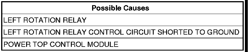 - Set Condition: When the Power Top Control Module senses high current flow on the Left Rotation Relay Control circuit when the Power Top Switch is pressed in the direction to lower the top.