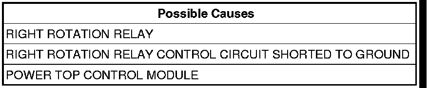 - Set Condition: When the Power Top Control Module senses high current flow on the Right Rotation Relay Control circuit when the Power Top Switch is pressed in the direction to lower the top.