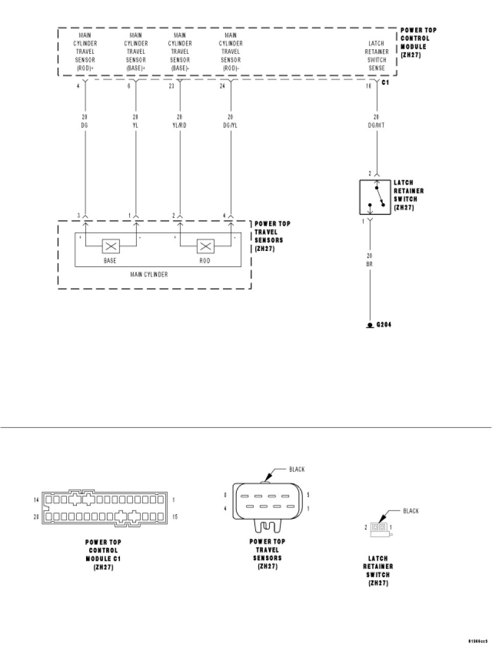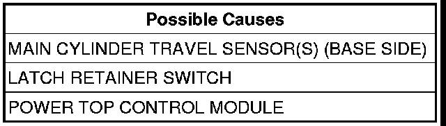 - Set Condition: When the Power Top Control Module senses the Main Travel Sensor (Base) and the Latch Retainer switch active.
