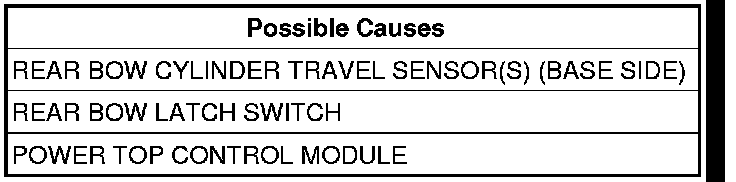 - Set Condition: When the Power Top Control Module senses the Rear Bow Cylinder (Base Side) and the Rear Bow Switch Latched active.
