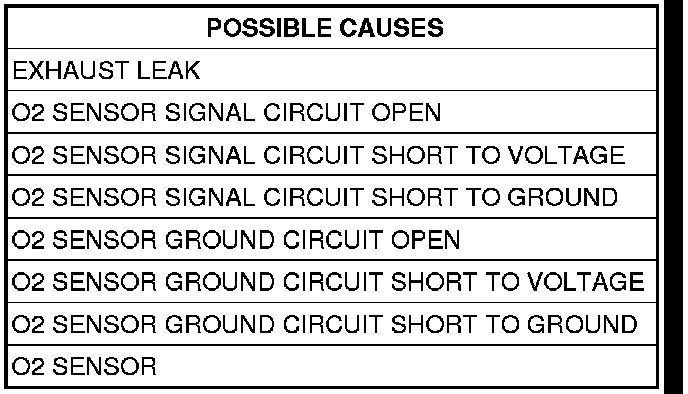 - Set Condition: The O2 sensor voltage switches only 11 times or less from lean to rich within 20 seconds during monitoring. Two Trip Fault.