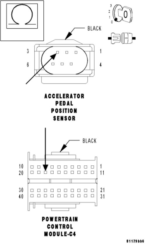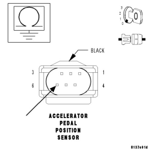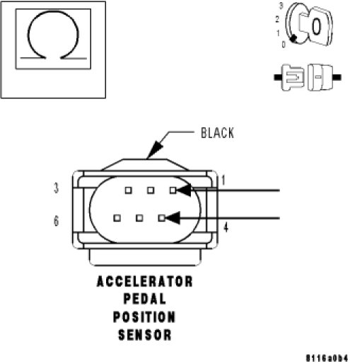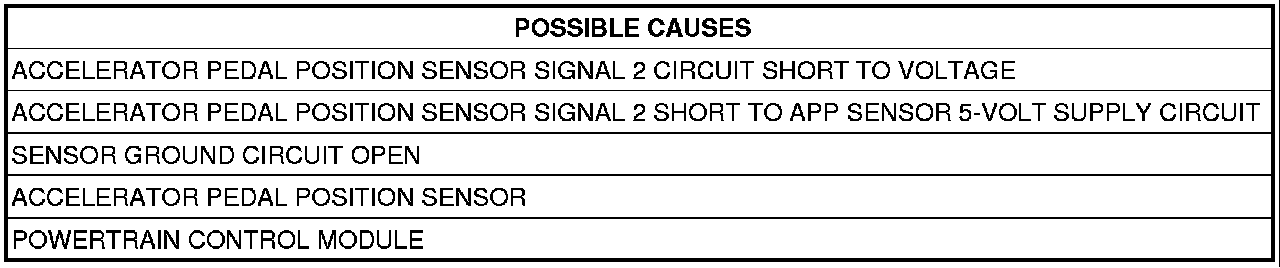 - Set Condition: When APP Sensor Signal 2 voltage is too high. Engine will only idle if the brake pedal is pressed or has failed. Acceleration rate and engine output are limited.