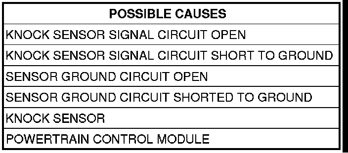 - Set Condition: Knock Sensor voltage is less than 0.10 volts.