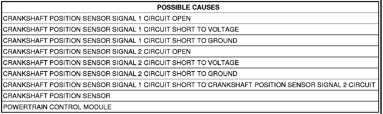 12. CKP SENSOR SIGNAL 1 CIRCUIT SHORT TO CKP SENSOR SIGNAL 2 CIRCUIT