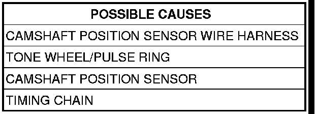 - Set Condition: If the Camshaft Position Signal (angular variation) is less than 15° of the Crankshaft Position Signal, this DTC is set.