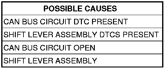 - Set Condition: CAN message received from the Shift Lever Assembly is incorrect.