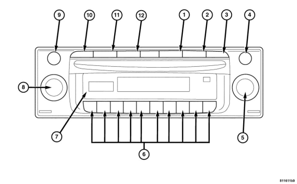 The audio system is standard factory-installed equipment. The system uses an ignition switched source of battery current so that the system will only operate when the ignition switch is in the ON/RUN or START positions.