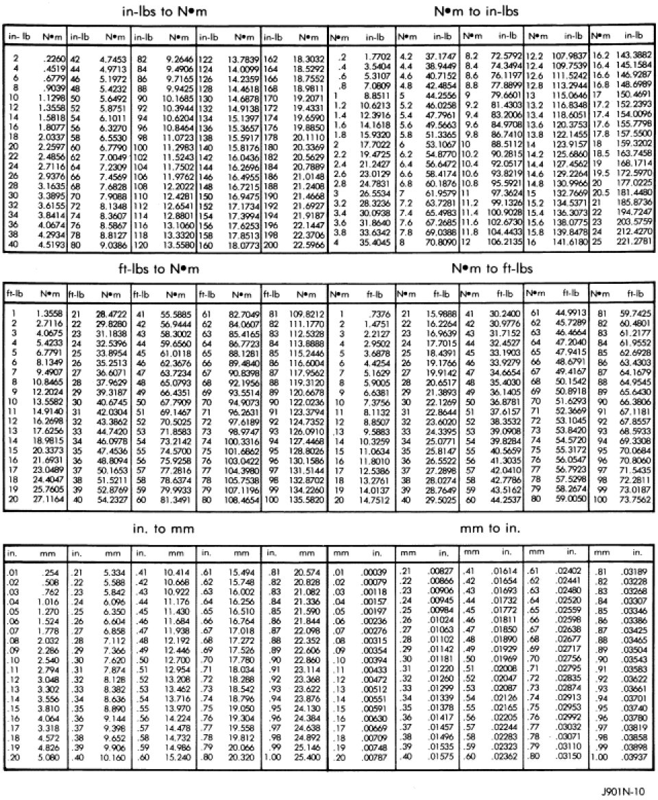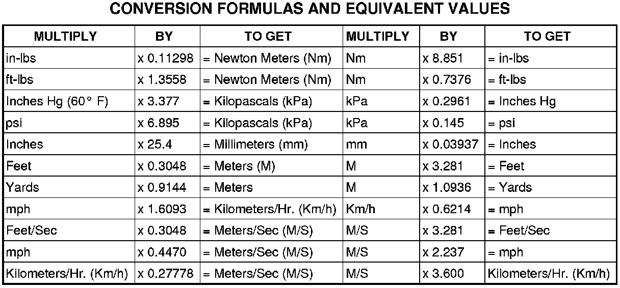 Refer to the Metric Conversion Chart to convert torque values listed in metric Newton- meters (Nm). Also, use the chart to convert between millimeters (mm) and inches (in.).