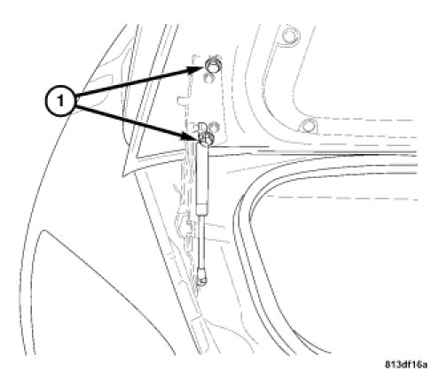 4. Remove the left side decklid retaining bolts (1).