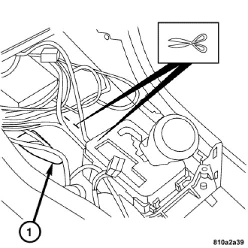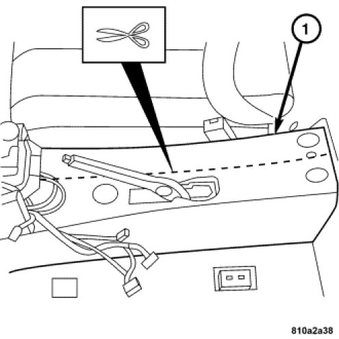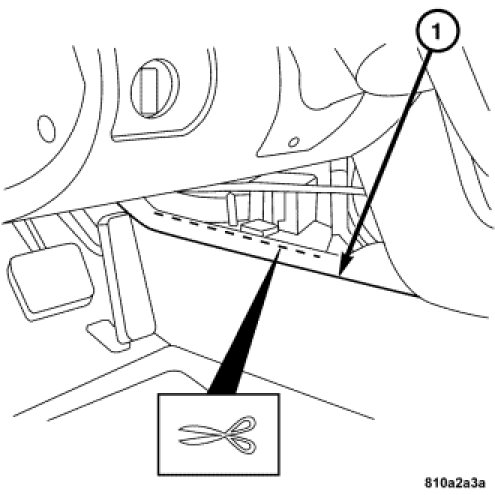 16. Cut the carpet (1) in the footwell area under the front center console.