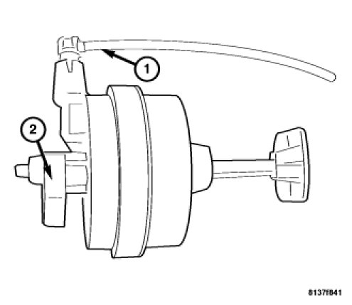 2. Install the pneumatic supply line (1) to the fuel door lock actuator.
