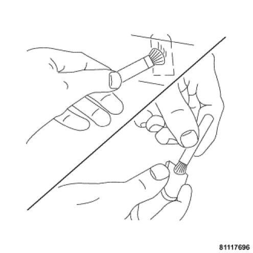 5. Apply adhesive accelerator to the bracket contact surface on the windshield glass. Allow the adhesive accelerator to dry for one minute. Do not touch the glass contact surface after the adhesive accelerator has been applied.