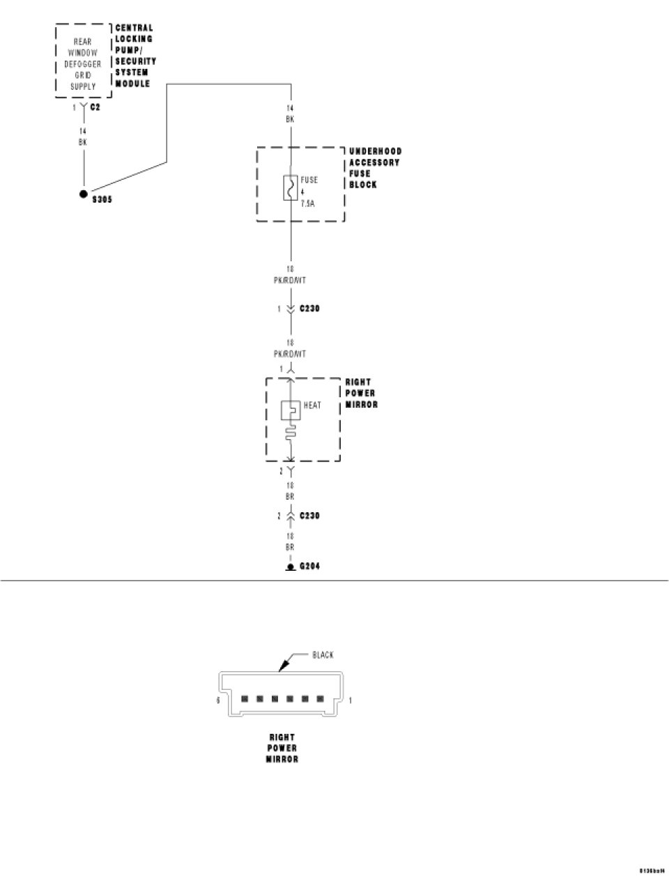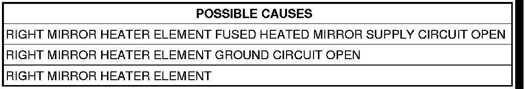 - Repair the Right Mirror Heater Element Ground circuit for an open.