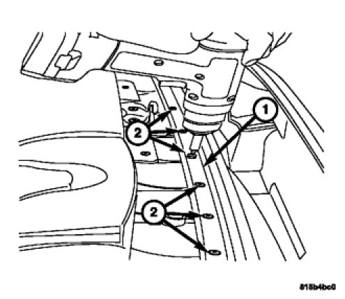 12. Install the top catch covers (2) to the header bow (1). Tighten screws to 4.25 - 5.75 Nm (38-51 in. lbs.).